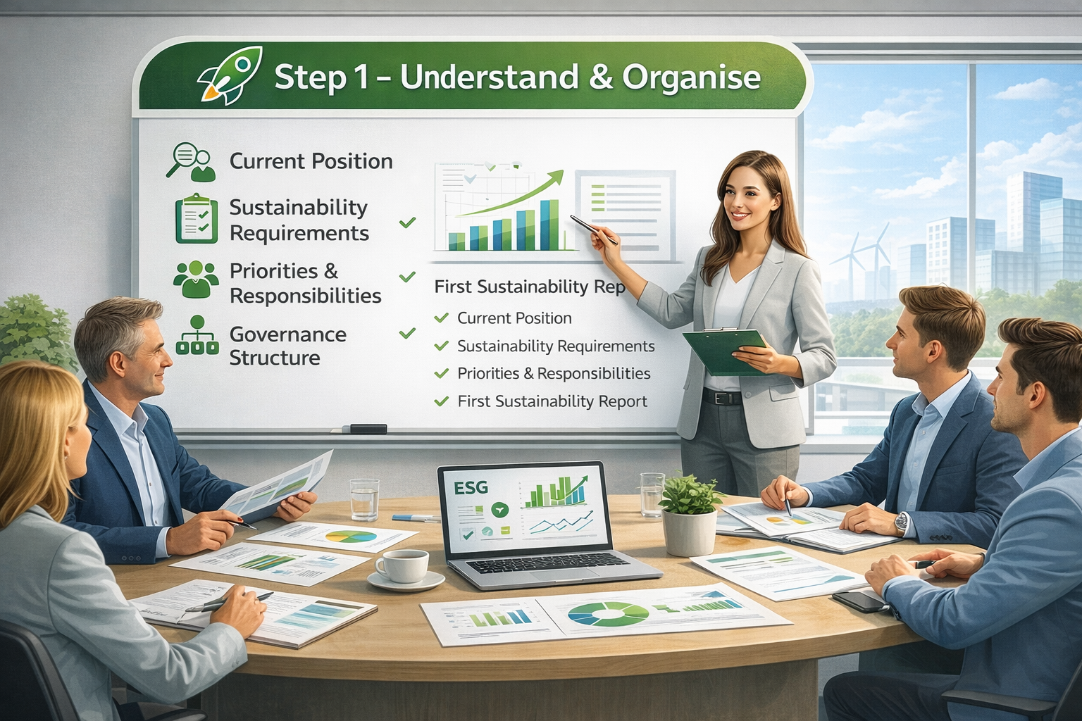 - Your leadership team gains visibility over sustainability topics, responsibilities become clear, and processes start to take shape.